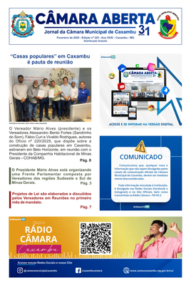 Jornal Câmara Aberta - Fevereiro 2025 Edição nº 325 - Ano XXXI. Destaques: Casas populares, Carnaval 2025, Reajuste dos professores.